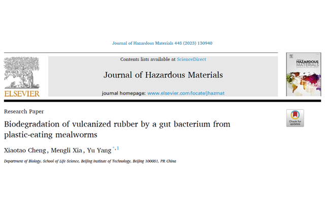 近日,北京理工大學生命學院楊宇課題組發現了一株對硫化橡膠廢棄物具有降解...