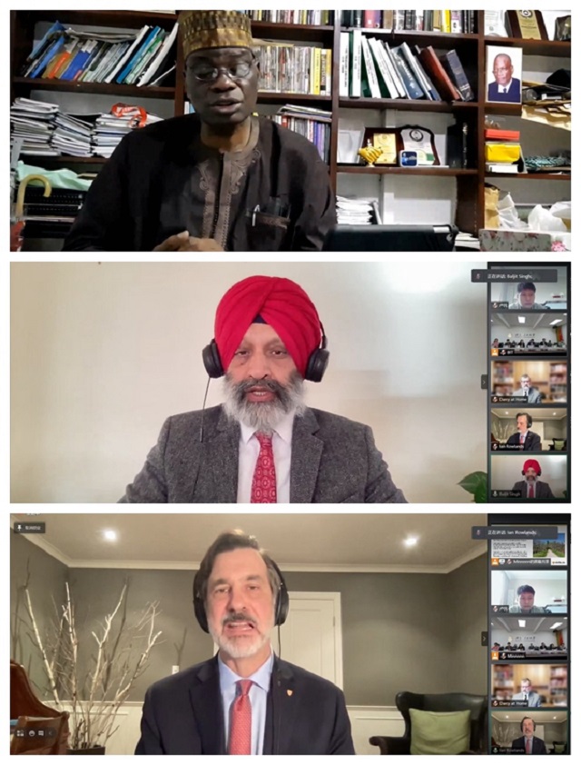在主旨發言環節,拉各斯大學校長Ogundipe Oluwatoyin教授以拉各斯大學國際關系、伙伴關系和發展辦公室為例,分享了拉各斯大學在地國際化的工作理念;薩斯喀徹溫大學科研副校長Baljit Singh博士在發言中詳細介紹了薩斯喀徹溫大學國際化辦學工作的主要成果以及水處理、食品安全、疫苗開發等方面科研進展,并表示薩斯喀徹溫大學高度重視與北京理工大學基于共建孔子學院建立的合作伙伴關系;滑鐵盧大學助理副校長Ian Rowlands以“后疫情時代的大學國際關系”為題,闡釋了六個國際化相關概念和三個關鍵主題,并以滑鐵盧大學為例,報告了提升大學影響力的措施。