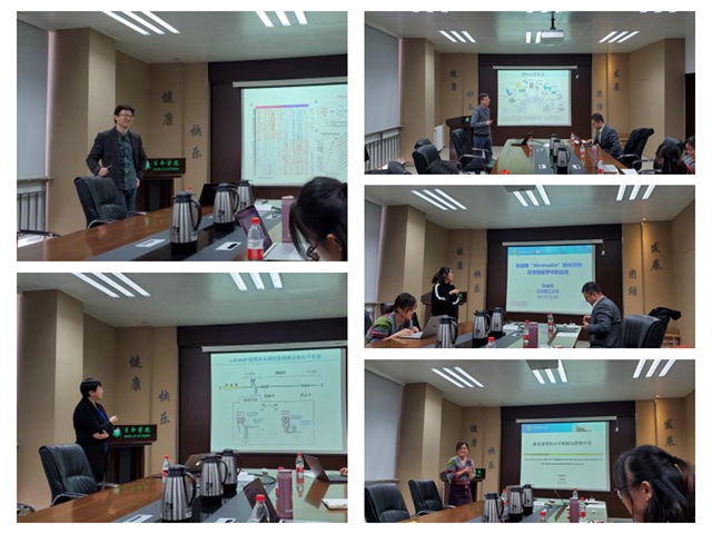 當天下午, 5位實驗室成員進行學術報告,董磊教授、高昂教授、楊宇副教授、張金鳳副教授、王燕峰助理教授分別就“shp2依賴的腫瘤治病機制與治療”“mRNA介導的基因表達調控研究”“師法自然-尋找塑料污染的清道夫” “自組裝納米藥物的制備及其在生物醫學中的應用”“觸覺感受的分子機制與藥物開發”等研究方向進行了報告,與會者就相關內容進行了熱烈的學術討論。