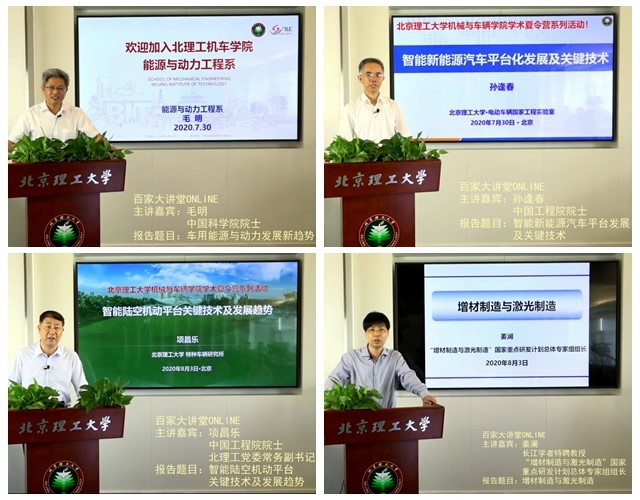 7月30日上午,北理工機械與車輛學院優秀大學生暑期夏令營院士長江系列學術報告會正式啟動,學術報告會也是學院迎八十周年校慶系列慶祝活動之一,學術報告依托研究生院“百家大講堂ONLINE”平臺,并通過北理工官方B站進行直播。中國兵器工業第二〇一研究所研究員、中國科學院院士、北理工雙聘院士毛明,北理工教授、中國工程院院士孫逢春分別做了《車用能源與動力發展新趨勢》和《智能新能源汽車(NEV)平臺發展及關鍵技術》的學術報告。8月3日上午,北理工黨委常務副書記、中國工程院院士項昌樂,北理工機械與車輛學院院長姜瀾分別做了題目為《智能陸空機動平臺關鍵技術及發展趨勢》和《增材制造與激光制造》的學術報告。