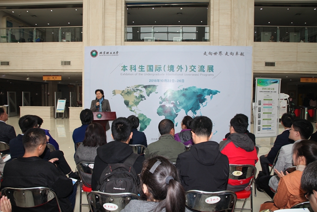 金秋十月,丹桂飄香。2018年10月22日,本科生國際(境外)交流展在良鄉校區徐特立圖書館一層大廳開幕,副校長王曉鋒,黨委宣傳部、教務部、良鄉校區管理處、國際交流合作處、校團委、圖書館、各學院等相關領導和老師,以及有意愿參加國際交流項目的學生參加了開幕式。開幕式由教務部部長栗蘋主持。