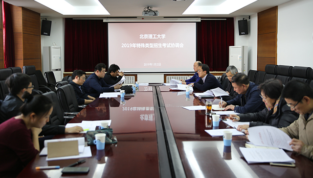 1月2日下午,北京理工大學2019年特殊類型招生考試協調會在2號樓211會議室召開。副校長王曉鋒出席會議。會議由招生辦公室主任張東主持。