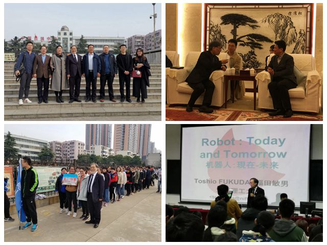 福田敏男院士一行首先拜訪了淮北市委、市政府,并與市領導就人才培養、優質生源輸送進行了座談交流。接著,福田敏男院士與淮北一中的高中生共同開展了“院士與我共跑早操”活動,在師生間造成了良好的轟動性效果。隨后他向以淮北一中學生為主體,涵蓋另外當地5所優質中學的學生及部分家長作了主題為“機器人:現在——未來”的報告,報告現場熱烈火爆,提問環節學生積極踴躍。福田敏男院士一行在報告會后向大家進行了北理工的學校專題介紹和招生政策的宣講,就部分專業方向內涵、大類招生、書院培養等學生及家長關心的問題與聽眾進行了充分的交流。通過此次院士進中學的活動,加深淮北地區的中學生們對北京理工大學的全面了解與向往。
