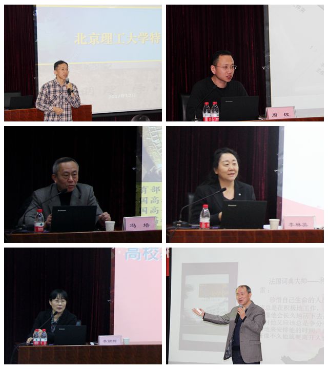 本次專題培訓(xùn)為期四天,先后邀請(qǐng)到了北京理工大學(xué)學(xué)生工作部部長(zhǎng)郭彥懿、北京理工大學(xué)組織部副部長(zhǎng)、黨校副校長(zhǎng)周波、首都經(jīng)濟(jì)貿(mào)易大學(xué)黨委書(shū)記馮培、北京理工大學(xué)馬克思主義學(xué)院院長(zhǎng)、博士生導(dǎo)師李林英、北京市委教育工委組織處處長(zhǎng)李麗輝、大連海事大學(xué)輔導(dǎo)員曲建武教授分別以“我校黨建與學(xué)生基層組織建設(shè)工作介紹”、“高校黨建工作面臨的新要求新任務(wù)”、“勝于無(wú)形——中國(guó)特色社會(huì)主義大學(xué)文化的挑戰(zhàn)與構(gòu)建”、“理想信念與大學(xué)生成長(zhǎng)成才”、“學(xué)生黨建與大學(xué)生政治素養(yǎng)”和“做好大學(xué)生健康成長(zhǎng)的人生導(dǎo)師”為主題做了4場(chǎng)專題報(bào)告、2場(chǎng)經(jīng)驗(yàn)交流。
