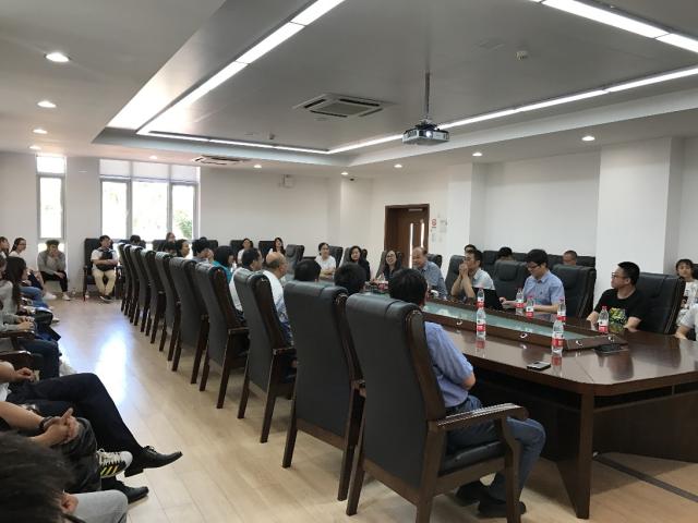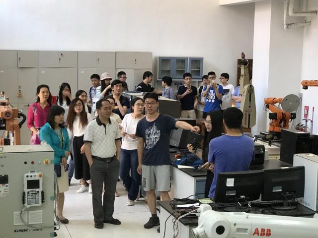 5月31日上午,33名師生黨員首先來到南開大學津南新校區,受到南開大學計算機與控制工程學院師生的熱情接待。南開趙新院長和夏元清分別介紹了學院近年來的科研進展以及取得的成果。雙方黨支部書記分別介紹了各自支部成員,并就黨建、教師思政工作、科學研究、人才培養等情況進行了深入交流。座談交流結束后,大家一起參觀了南開大學計控學院的仿真機器人實驗室、微操作機器人系統實驗室和移動與飛行機器人實驗室。南開大學的老師同學向大家全面、詳細地介紹各個實驗室的實驗項目。