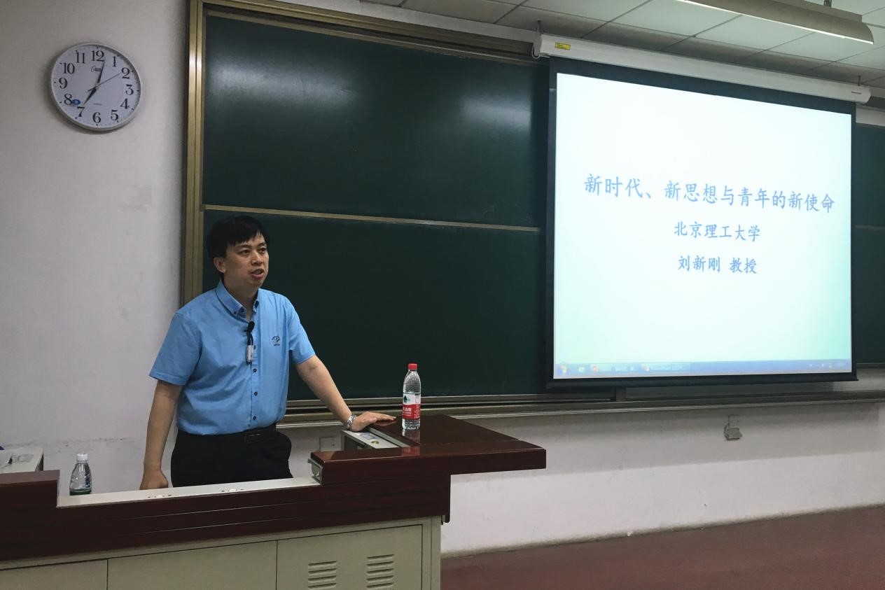為深入學習貫徹落實習近平新時代中國特色社會主義思想和黨的十九大精神,扎實推進“擔復興大任,做時代新人”主題教育深入開展,計算機學院于6月5日晚在良鄉校區1-104教室舉辦二級黨校黨課暨“奮進新時代”專家報告,北京理工大學馬克思主義學院副院長劉新剛教授講授了主題為“新時代、新思想與青年的新使命”的報告。計算機學院2017、2016級本科生入黨積極分子、黨員、班長、團支書、學生組織主要負責人共計180余人參加了本次黨課。