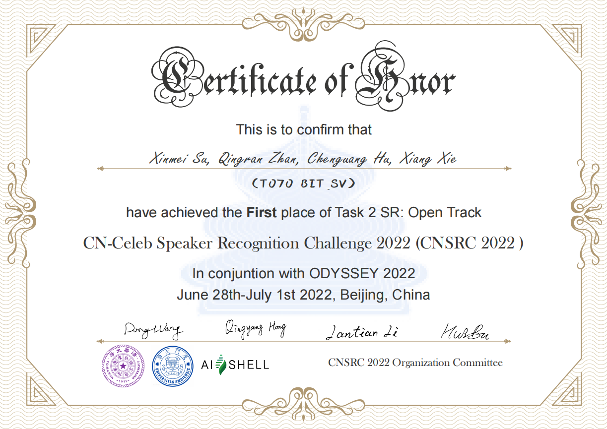 北理工學子榮獲聲紋識別挑戰賽說話人檢索任務第一名