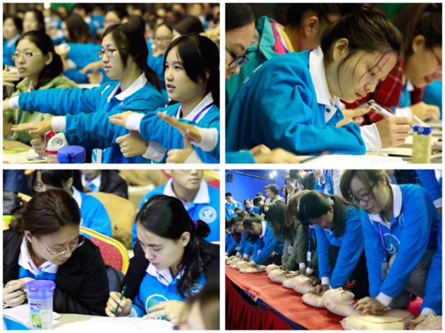 早上七點半,大部分志愿者還沉浸在夢鄉之中,鄧恒(大四學生)和于謙(大三學生)同學卻早早地來到了會場。原來,他們要配合馬桂林老師給志愿者們講解急救的相關知識。作為急救模特,他們四次走上講臺,用自己的表演向臺下的志愿者們介紹了心臟起搏、地震脫險、包扎捆綁、處理氣管內異物的相關知識。他們用自己的親身實踐加深了同學們對急救知識的理解與記憶,同時自己也受益匪淺,鄧恒同學就談到:“我覺得,作為志愿者,首先要有自我保護和保護他人的能力,這樣志愿服務才有意義、有保障,馬老師生動地給我們上了一節急救自護課,我想這會成為我一生中美好而難忘的回憶。”