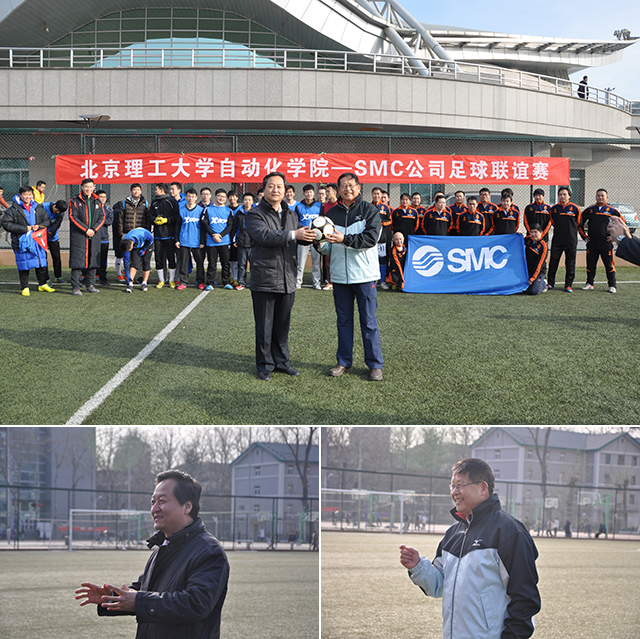 此次足球賽由自動化學院和SMC(中國)有限公司聯合舉辦,雙方代表隊分別是北理工自動化學院師生組成的聯合球隊、SMC(中國)有限公司員工組成的SMC足球隊。自動化學院院長兼黨委書記王軍政、SMC公司總經理趙彤以及學院部分師生和公司一些員工現場觀看了本場球賽。