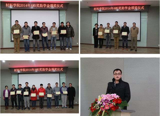 首先,頒發的是材料學院2014年度AMS獎助學金。佛山先進機械設備有限公司(AMS)作為國內從事表面工程技術的知名企業,事業蓬勃發展的同時不忘心系教育事業,從2005年期連續十年在材料學院設立獎助學金,每年捐贈五萬元,累計捐贈五十萬元,300余名學生得到獎勵和資助。