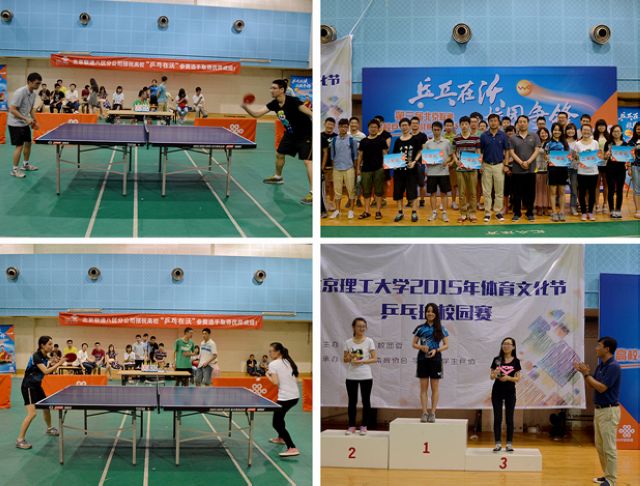 6月6、7日,由體育部、校團委共同主辦的乒乓球校園賽總決賽在中關村校區體育館舉行。經過前期的小組賽、循環賽,脫穎而出的32對選手進行了最后的較量。最終來自機械與車輛學院的陳超與計算機學院陳丹鳳分別摘得男單、女單冠軍。賽后頒獎儀式上,體育部主任董兆波,賽事贊助商代表、北京聯通第八分公司副總經理石波為獲獎選手頒獎。乒乓球作為國球,在北理工校園具有廣泛的群眾基礎。自去年起,學校專門組織系統專業的賽事,激發更多學生參與到體育運動之中。在良好的氛圍之下,以學生乒協為班底組建的乒乓球隊在首都大學生乒乓球錦標賽及“五四杯”首都高校乒乓球邀請賽中不斷取得好成績,成為學校“非專業運動隊”建設的典型代表。