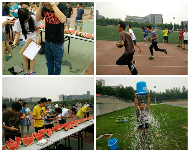 7月5日上午舉行了“西瓜碰碰涼”活動。活動包括猜猜我多重、西瓜大搬運和終極吃西瓜三個環節。活動分為個人賽和小組賽兩種形式。在以宿舍為單位的西瓜大搬運活動中,西瓜化身接力棒在每個宿舍成員之間傳遞。盡管西瓜的重量減慢了同學的腳步,甚至有的人在奔跑過程中摔倒,但默契的配合、爭先的腳步以及團結的精神卻與現場的歡聲笑語相融合,打動了在場的每一個人。在終極吃西瓜環節中,參賽選手在規定的時間內吃西瓜,以體重增加的多少來判斷成績。比賽過程中,很多同學克服羞澀的心理,在眾人面前,以最快的速度吃掉最多的西瓜,在炎炎夏日中,給身體帶來絲絲清涼。最后。每個比賽均有一名同學接受冰桶挑戰,他們在大家的加油助威聲中,感受的冰桶的刺激和挑戰。