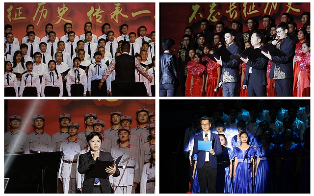18支隊伍先后演唱《我和我的祖國》、《南泥灣》、《保衛黃河》等膾炙人口的經典曲目,表演情緒飽滿,演唱旋律悠揚,宇航學院、自動化學院、計算機學院、軟件學院、數學學院等學院的黨政領導也與師生一齊登臺表演。精彩的演出、熱烈的氣氛感染了現場的每一個人,喝彩聲掌聲經久不息。
