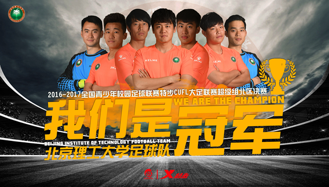 2016—2017全國青少年校園足球聯賽特步CUFL大學生足球聯賽超級組北方賽區決賽于4月30—5月10日在內蒙古科技大學舉行。北理工足球隊克服中乙聯賽和大學生聯賽雙線作戰的困難,經過小組賽、淘汰賽六場比賽角逐,最終與老對手中國農業大學會師決賽。在冠軍爭奪戰中,北理工足球隊在上半場連失3球的不利局面下,向對手發起絕地反擊,在終場前扳平比分。點球大戰中,替補出場的門將王瑋在第4輪成功撲出對方點球,隨后出場的周磊一蹴而就擊敗中國農業大學。北理工足球隊完美復刻歐洲冠軍聯賽伊斯坦布爾之夜的神話,繼續蟬聯大學生足球聯賽北方賽區冠軍。