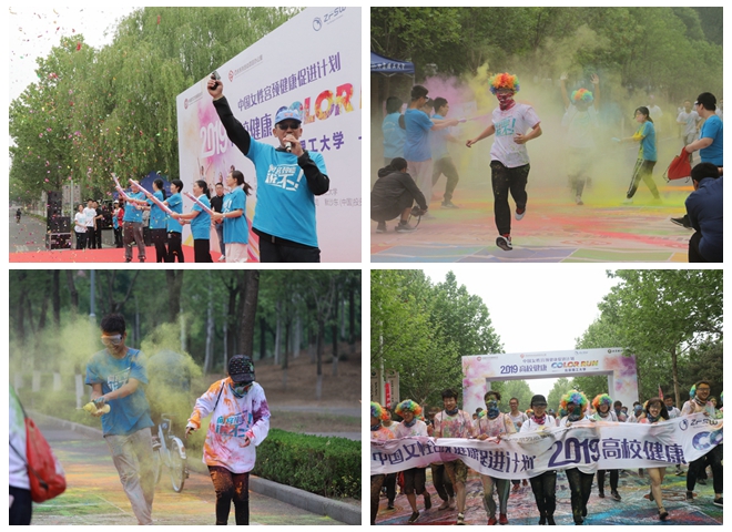 “無色彩、不青春”,比賽第二個環節是“校園彩跑”群眾趣味比賽單元,同學們手持彩跑粉,在藍、粉、綠、黃、紅交疊的彩粉中,盡情奔跑,整個方陣瞬間變得炫麗繽紛,整個賽場沉浸在一片歡快聲中,釋放青春能量,燃動多彩校園。