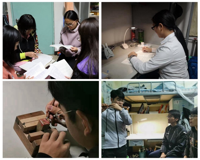 “期末周和考試周時(shí),集體在宿舍內(nèi)學(xué)習(xí),堅(jiān)持不抬頭,不玩手機(jī);若寢室中有人學(xué)習(xí),其他的室友就會(huì)自覺(jué)降低音量,或者在該室友的帶動(dòng)下學(xué)習(xí);對(duì)于相同的科目,在宿舍相互討論,互相借鑒,吸取經(jīng)驗(yàn)......”,以上都是疏桐園425宿舍的“宿舍學(xué)習(xí)之道”。憑借著良好的宿舍學(xué)習(xí)習(xí)慣,疏桐園425宿舍有兩人在上一學(xué)年都拿到了國(guó)家獎(jiǎng)學(xué)金。“呂晨曉與陳冰雅同學(xué)都是德語(yǔ)專業(yè),他們不僅經(jīng)常使用德語(yǔ)對(duì)話,還會(huì)在宿舍里普及德語(yǔ)常用口語(yǔ),為我們營(yíng)造了語(yǔ)言學(xué)習(xí)氛圍。”獲得學(xué)習(xí)之家的425宿舍成員唐銘睿分享到。良好的宿舍氛圍不僅可以給宿舍成員提供一個(gè)良好的學(xué)習(xí)環(huán)境,還有助于培養(yǎng)良好的生活習(xí)慣和健康向上的積極心態(tài)。