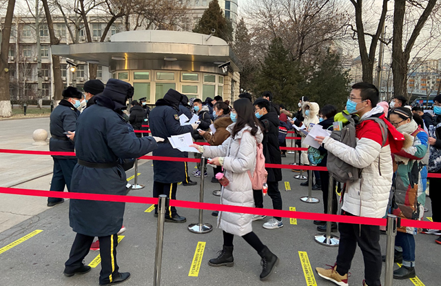 12月21日,在多部門的配合下,我校在中關村校區及良鄉校區分別組織了針對本校考生及所有考務人員的核酸檢測工作。