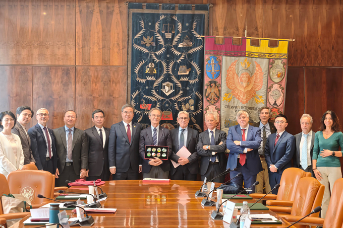 在意大利羅馬第一大學,張軍與該校副校長西卡羅內(Giuseppe Ciccarone)進行會談。雙方同意在已有法學領域合作基礎上建立校級全面合作關系,深化法學、經濟、外交、宇航工程等重點領域科研合作,推進多層次師生交流,開展高質量雙學位項目。