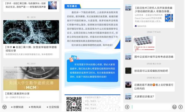 學院組織往屆學術論壇優秀論文作者、往屆美國數學建模大賽獲獎學生、往屆世紀杯獲獎作品作者分享自己在學術論文、學科競賽、科技創新方面的成果經驗,以《學術·創造》《競賽》等連載網絡推送為經驗交流窗口,為即將到來的徐特立學院第三屆學術論壇、美國數學建模大賽、第十七屆“世紀杯”競賽進行線上動員與培訓,并邀請相關老師建立在線學習交流群,為同學們答疑解惑。